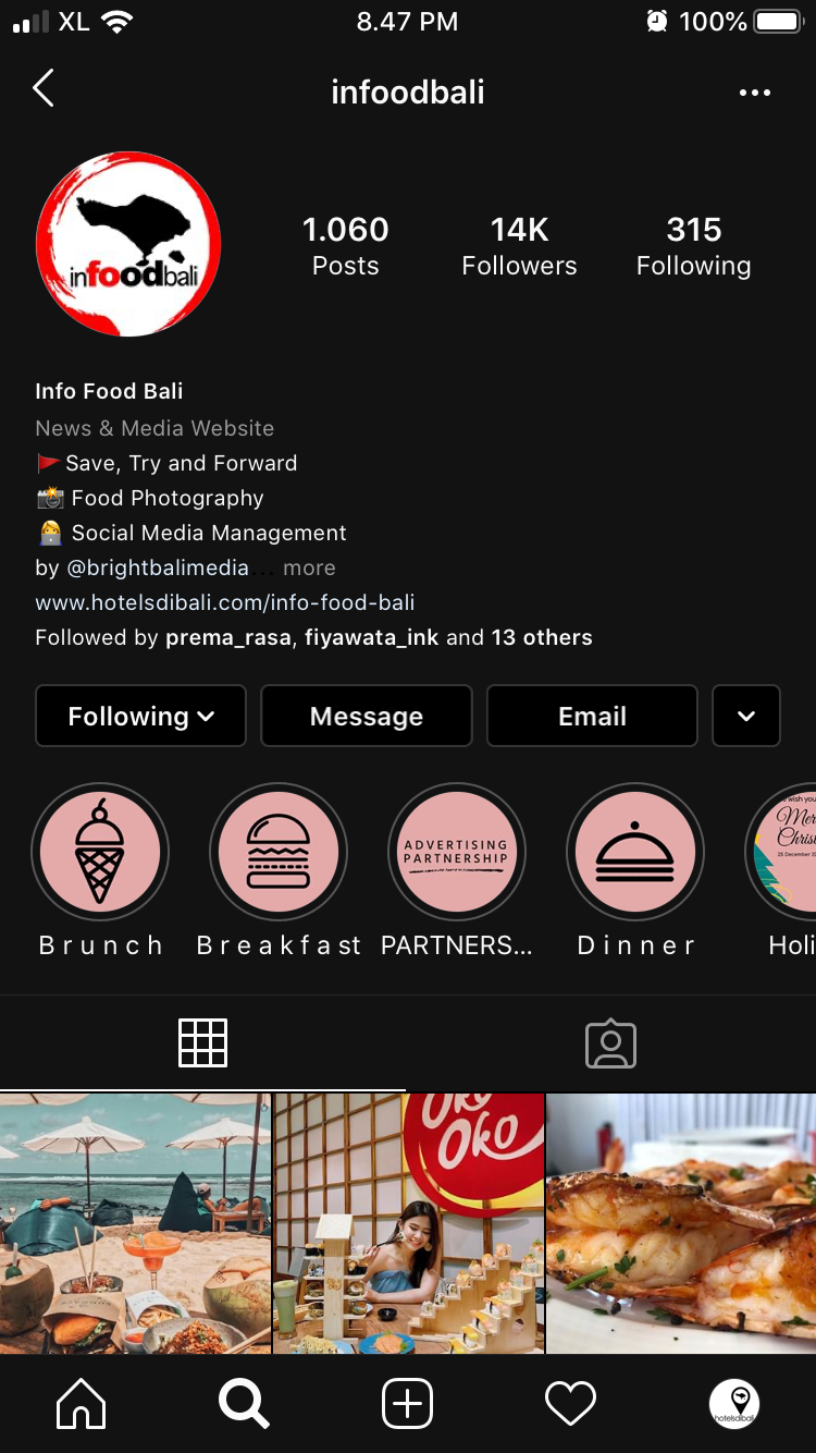 Saat memilih nama pengguna, kami menyarankan untuk memilih nama pengguna yang sedekat mungkin dengan nama Anda atau nama brand. Anda ingin nama pengguna Anda menjadi sederhana dan mudah diingat. Lihatlah salah satu brand kami di bawah ini @infoodbali: