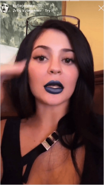 Misalnya, jika Anda adalah merek kosmetik, Anda dapat membuat filter AR untuk membiarkan pengikut Anda “mencoba” produk Anda seperti yang dilakukan Kylie Cosmetics dengan filter Kit Kylie mereka.